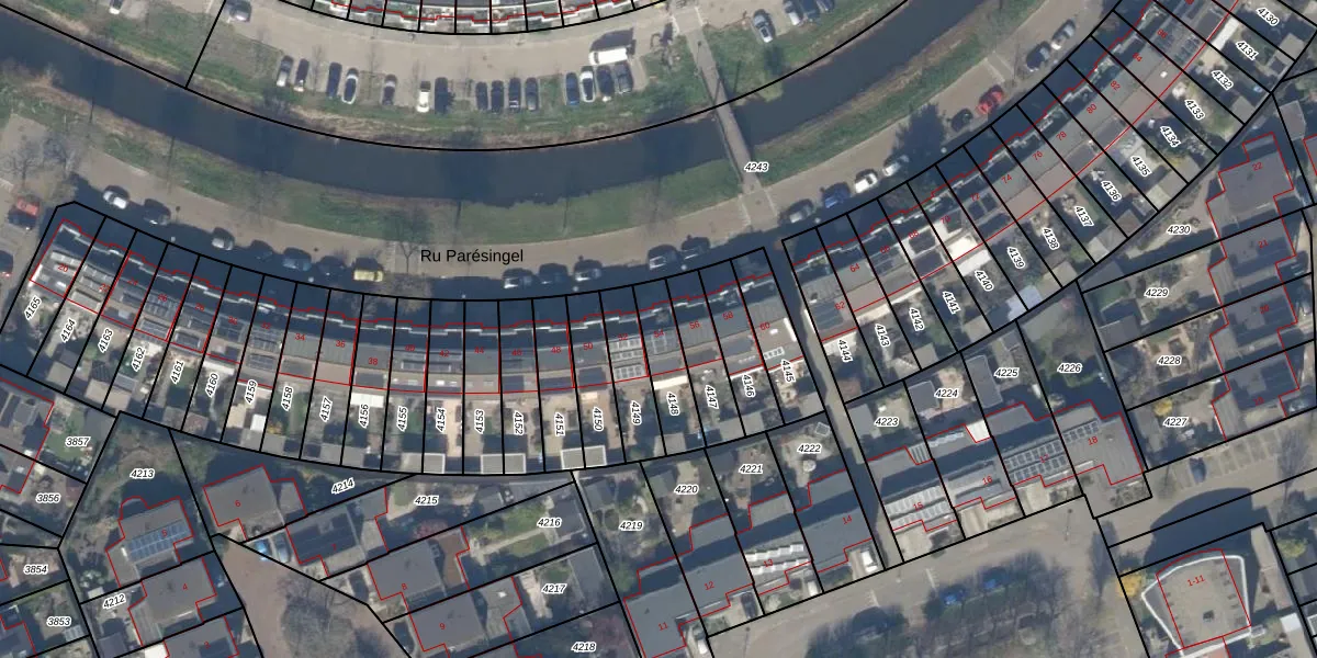 Het perceel waarop Ru Parésingel 54 staat heeft een oppervlakte van 150 m². Dit is een middelgroot perceel. De perceeloppervlakte wordt geregistreerd door het Kadaster. Gedetailleerde informatie over de maten van dit perceel kunt u vinden in het rapport Kadastrale kaart met maatvoering van Ru Parésingel 54.