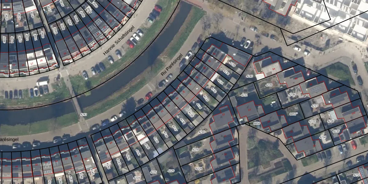 Het perceel waarop Ru Parésingel 82 staat heeft een oppervlakte van 150 m². Dit is een middelgroot perceel. De perceeloppervlakte wordt geregistreerd door het Kadaster. Gedetailleerde informatie over de maten van dit perceel kunt u vinden in het rapport Kadastrale kaart met maatvoering van Ru Parésingel 82.