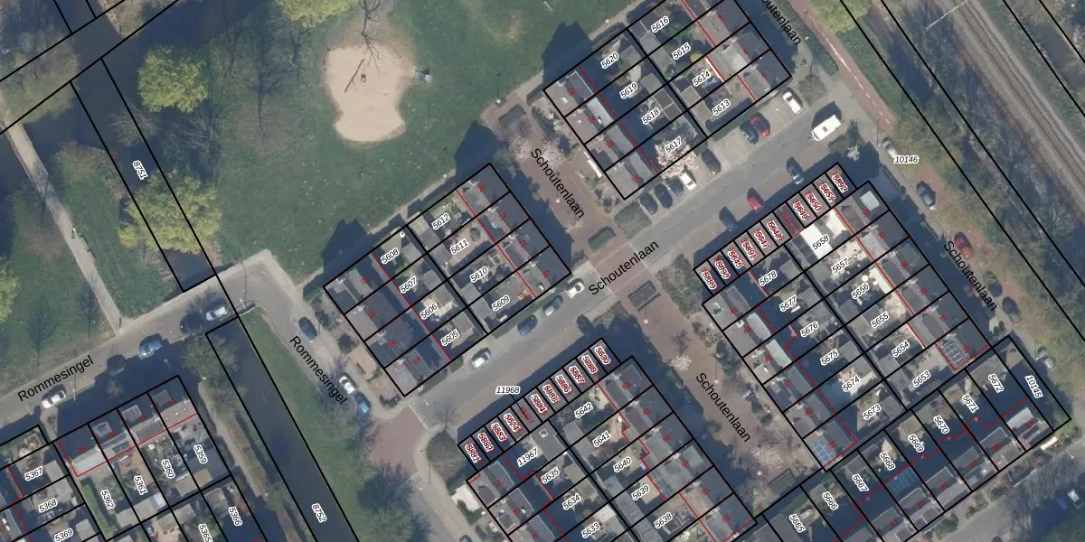 Schoutenlaan 20 is gelegen op kadastraal perceel PAK00C5609. Deze kadastrale aanduiding is uniek en wordt gebruikt door het Kadaster om eigendomsrechten en andere zakelijke rechten vast te leggen. Het perceel maakt onderdeel uit van de kadastrale gemeente Pijnacker.