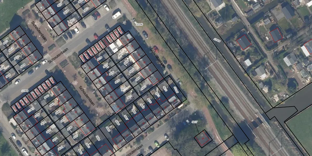 Schoutenlaan 29 is gelegen op kadastraal perceel PAK00C5653. Deze kadastrale aanduiding is uniek en wordt gebruikt door het Kadaster om eigendomsrechten en andere zakelijke rechten vast te leggen. Het perceel maakt onderdeel uit van de kadastrale gemeente Pijnacker.