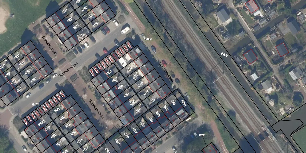 Schoutenlaan 33 is gelegen op kadastraal perceel PAK00C5655. Deze kadastrale aanduiding is uniek en wordt gebruikt door het Kadaster om eigendomsrechten en andere zakelijke rechten vast te leggen. Het perceel maakt onderdeel uit van de kadastrale gemeente Pijnacker.