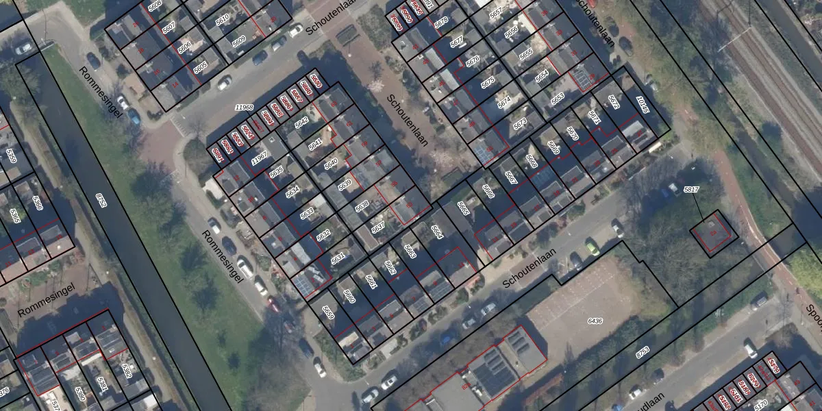 Schoutenlaan 53 is gelegen op kadastraal perceel PAK00C5637. Deze kadastrale aanduiding is uniek en wordt gebruikt door het Kadaster om eigendomsrechten en andere zakelijke rechten vast te leggen. Het perceel maakt onderdeel uit van de kadastrale gemeente Pijnacker.