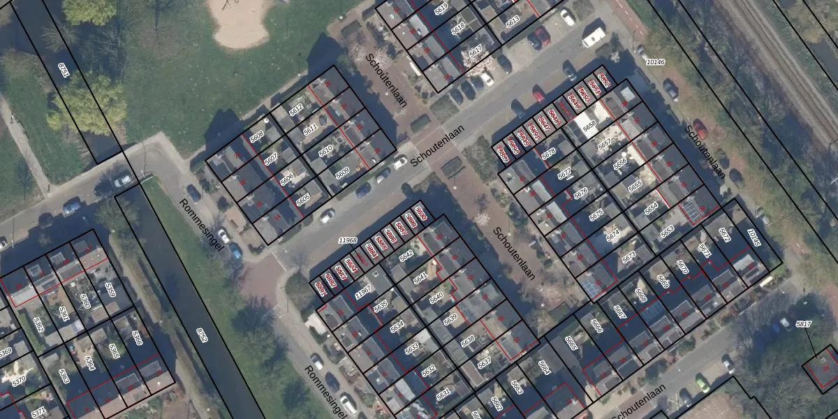 Schoutenlaan 65-G1 is gelegen op kadastraal perceel PAK00C5630. Deze kadastrale aanduiding is uniek en wordt gebruikt door het Kadaster om eigendomsrechten en andere zakelijke rechten vast te leggen. Het perceel maakt onderdeel uit van de kadastrale gemeente Pijnacker.