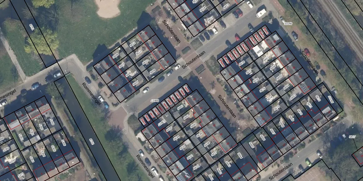 Schoutenlaan 65-G2 is gelegen op kadastraal perceel PAK00C5888. Deze kadastrale aanduiding is uniek en wordt gebruikt door het Kadaster om eigendomsrechten en andere zakelijke rechten vast te leggen. Het perceel maakt onderdeel uit van de kadastrale gemeente Pijnacker.