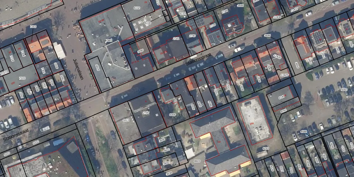 Stationsstraat 16 is gelegen op kadastraal perceel PAK00C6005. Deze kadastrale aanduiding is uniek en wordt gebruikt door het Kadaster om eigendomsrechten en andere zakelijke rechten vast te leggen. Het perceel maakt onderdeel uit van de kadastrale gemeente Pijnacker.