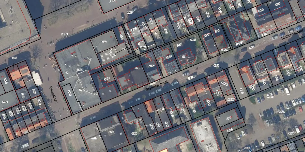 Het perceel waarop Stationsstraat 31 staat heeft een oppervlakte van 193 m². Dit is een middelgroot perceel. De perceeloppervlakte wordt geregistreerd door het Kadaster. Gedetailleerde informatie over de maten van dit perceel kunt u vinden in het rapport Kadastrale kaart met maatvoering van Stationsstraat 31.