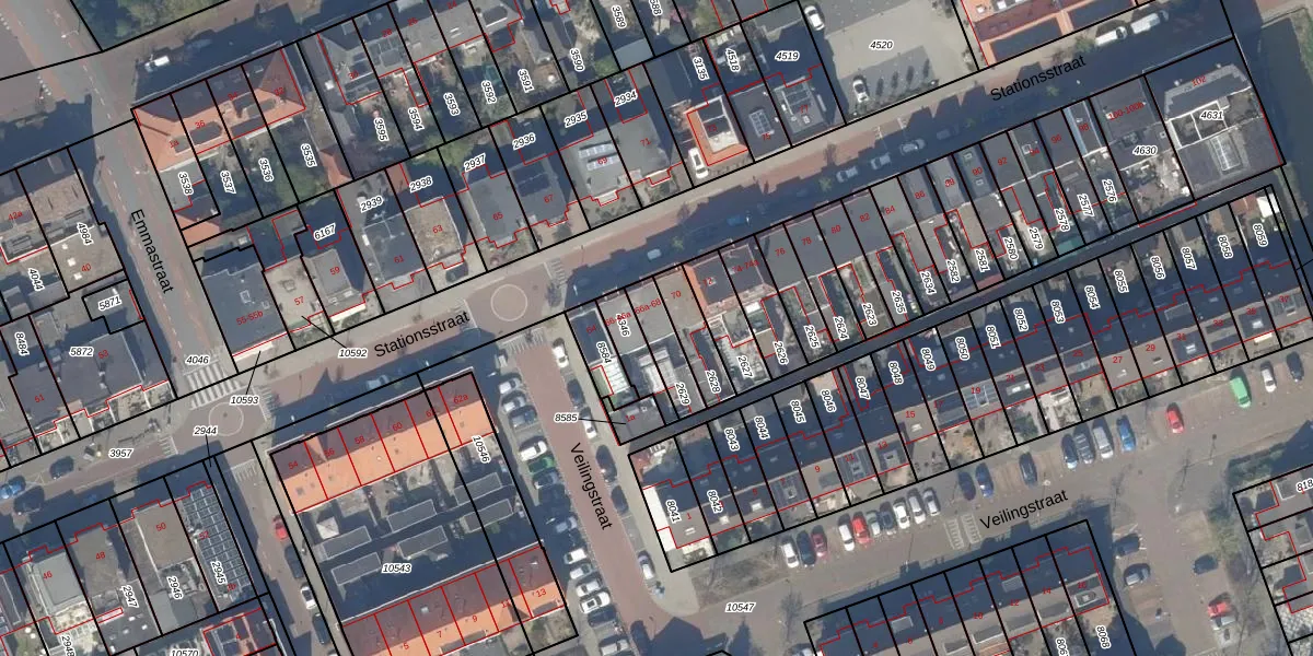 Het perceel waarop Stationsstraat 66-a staat heeft een oppervlakte van 104 m². Dit is een middelgroot perceel. De perceeloppervlakte wordt geregistreerd door het Kadaster. Gedetailleerde informatie over de maten van dit perceel kunt u vinden in het rapport Kadastrale kaart met maatvoering van Stationsstraat 66-a.