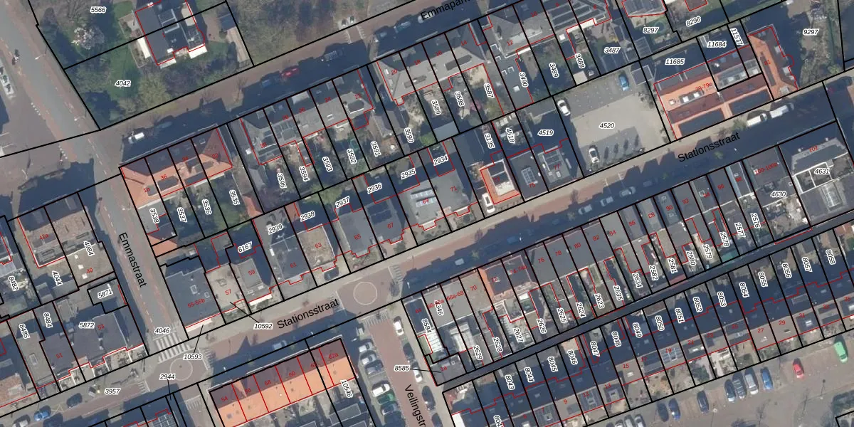 Het perceel waarop Stationsstraat 69 staat heeft een oppervlakte van 169 m². Dit is een middelgroot perceel. De perceeloppervlakte wordt geregistreerd door het Kadaster. Gedetailleerde informatie over de maten van dit perceel kunt u vinden in het rapport Kadastrale kaart met maatvoering van Stationsstraat 69.