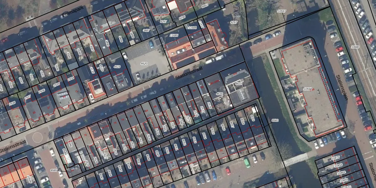 Het perceel waarop Stationsstraat 94 staat heeft een oppervlakte van 95 m². Dit is een klein perceel. De perceeloppervlakte wordt geregistreerd door het Kadaster. Gedetailleerde informatie over de maten van dit perceel kunt u vinden in het rapport Kadastrale kaart met maatvoering van Stationsstraat 94.