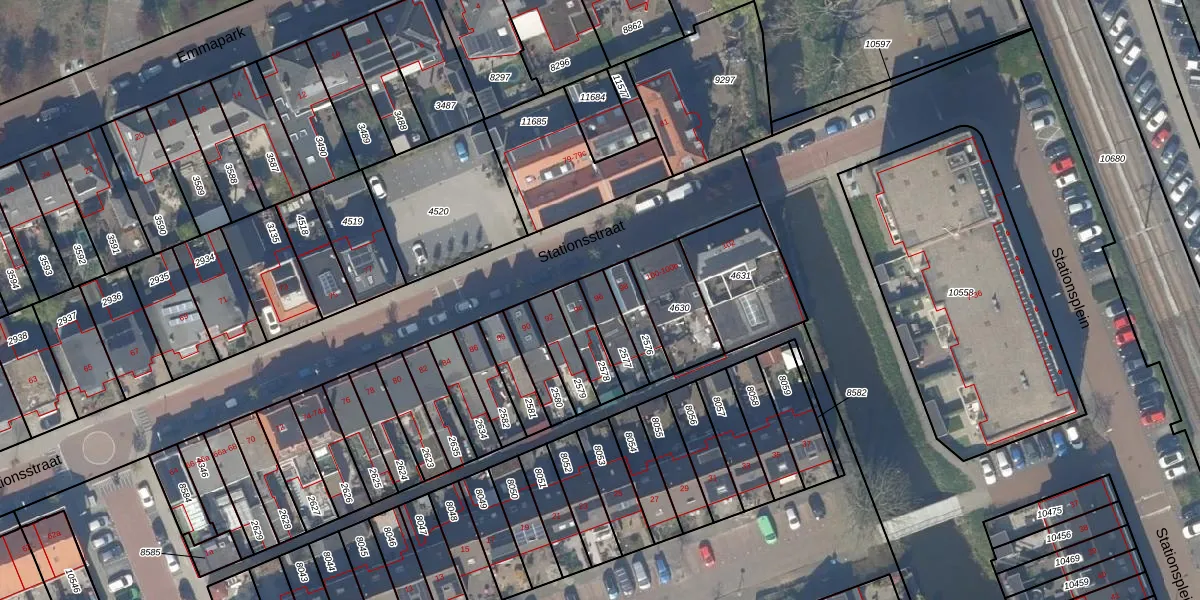 Stationsstraat 96 is gelegen op kadastraal perceel PAK00C2577. Deze kadastrale aanduiding is uniek en wordt gebruikt door het Kadaster om eigendomsrechten en andere zakelijke rechten vast te leggen. Het perceel maakt onderdeel uit van de kadastrale gemeente Pijnacker.