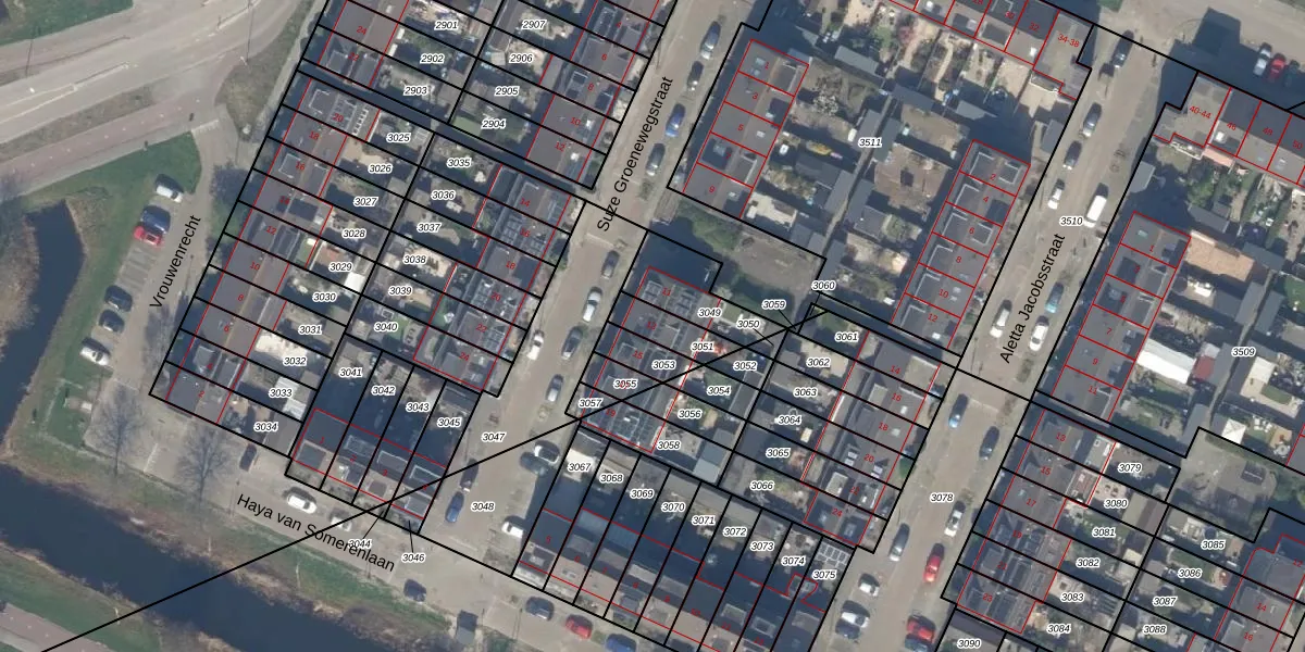 Het perceel waarop Suze Groenewegstraat 13 staat heeft een oppervlakte van 95 m². Dit is een klein perceel. De perceeloppervlakte wordt geregistreerd door het Kadaster. Gedetailleerde informatie over de maten van dit perceel kunt u vinden in het rapport Kadastrale kaart met maatvoering van Suze Groenewegstraat 13.
