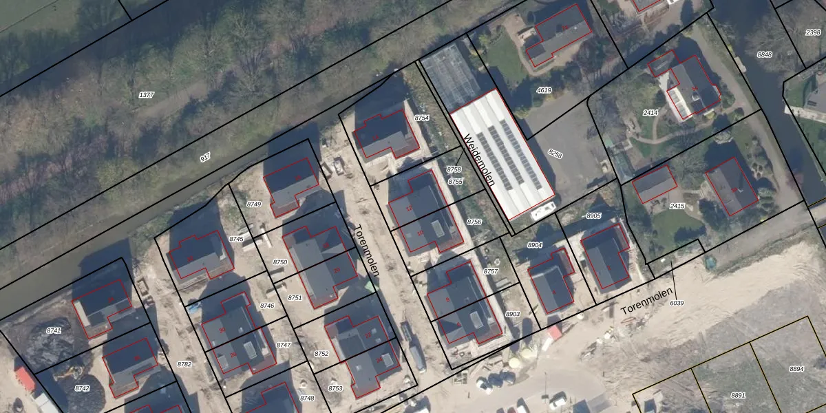Het perceel waarop Torenmolen 12 staat heeft een oppervlakte van 297 m². Dit is een middelgroot perceel. De perceeloppervlakte wordt geregistreerd door het Kadaster. Gedetailleerde informatie over de maten van dit perceel kunt u vinden in het rapport Kadastrale kaart met maatvoering van Torenmolen 12.