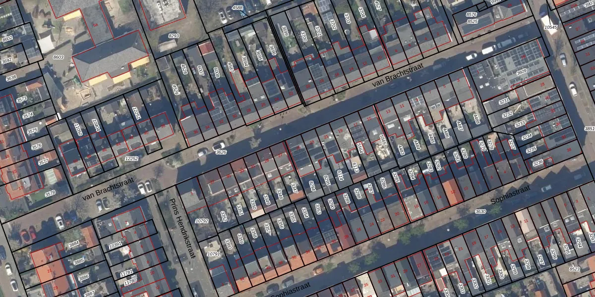 Gebruik de zoekbalk of klik op een perceel voor informatie over de adressen binnen dit perceel.