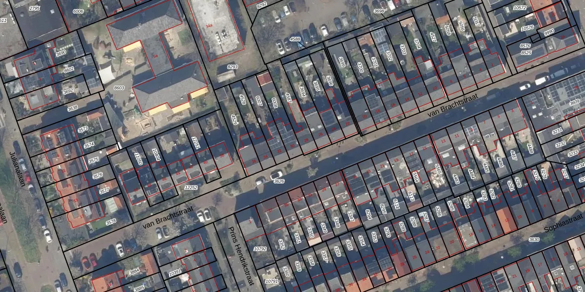 van Brachtstraat 30 is gelegen op kadastraal perceel PAK00C6008. Deze kadastrale aanduiding is uniek en wordt gebruikt door het Kadaster om eigendomsrechten en andere zakelijke rechten vast te leggen. Het perceel maakt onderdeel uit van de kadastrale gemeente Pijnacker.