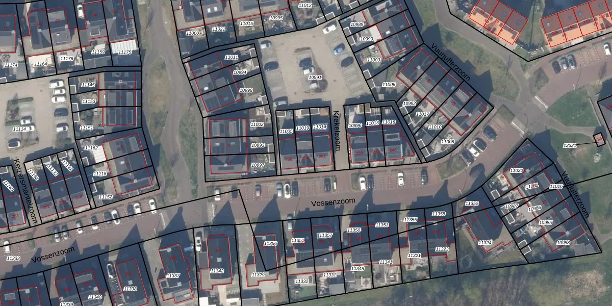 Het perceel waarop Vossenzoom 254 staat heeft een oppervlakte van 114 m². Dit is een middelgroot perceel. De perceeloppervlakte wordt geregistreerd door het Kadaster. Gedetailleerde informatie over de maten van dit perceel kunt u vinden in het rapport Kadastrale kaart met maatvoering van Vossenzoom 254.