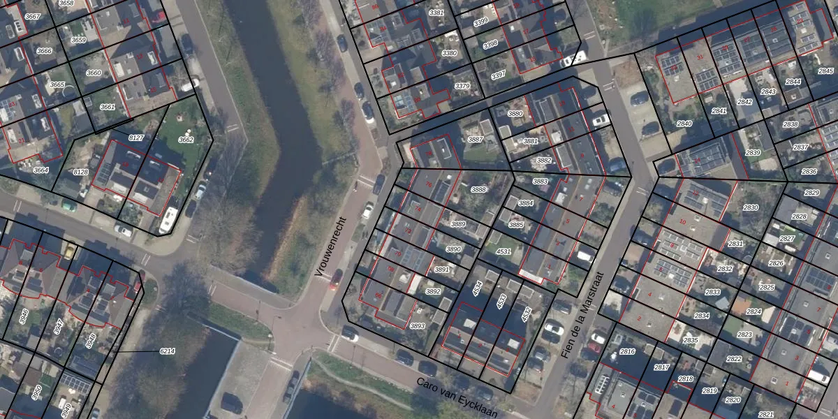 Gebruik de zoekbalk of klik op een perceel voor informatie over de adressen binnen dit perceel.
