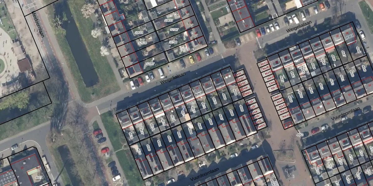 Gebruik de zoekbalk of klik op een perceel voor informatie over de adressen binnen dit perceel.
