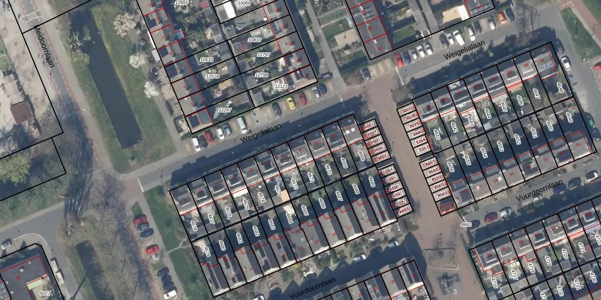 Weigelialaan 16 is gelegen op kadastraal perceel PAK00C4671. Deze kadastrale aanduiding is uniek en wordt gebruikt door het Kadaster om eigendomsrechten en andere zakelijke rechten vast te leggen. Het perceel maakt onderdeel uit van de kadastrale gemeente Pijnacker.