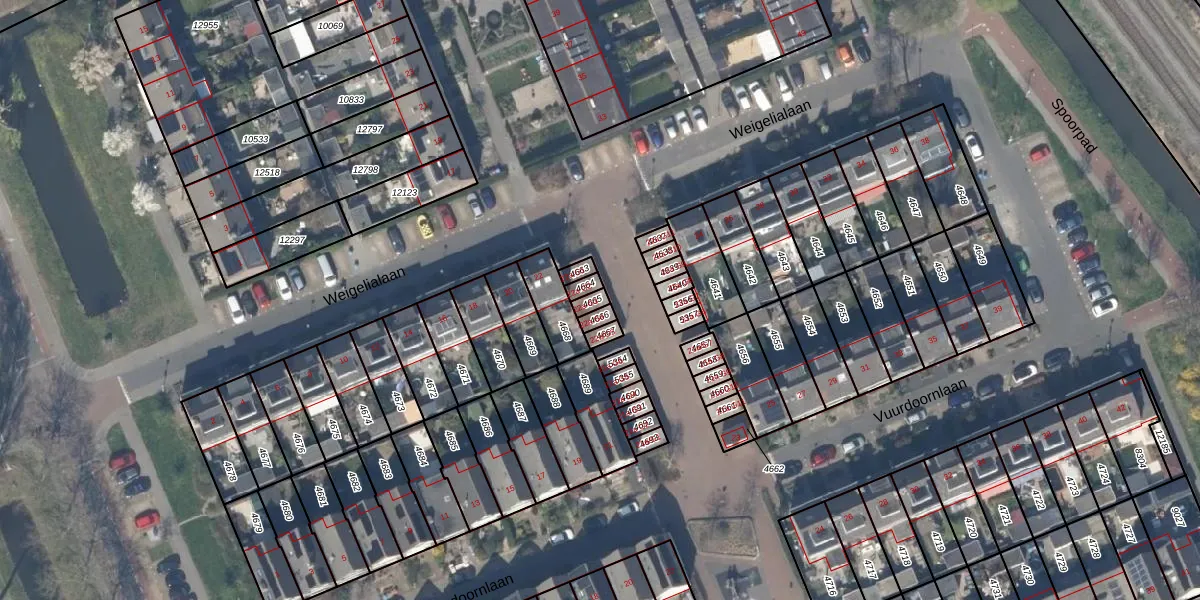 Gebruik de zoekbalk of klik op een perceel voor informatie over de adressen binnen dit perceel.