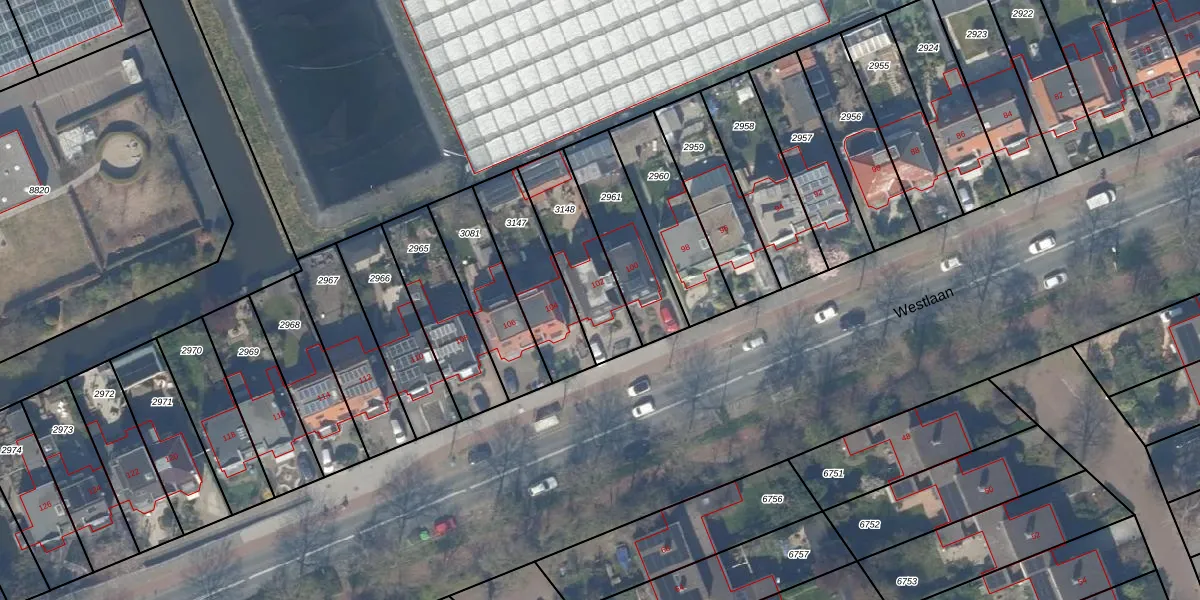 Het perceel waarop Westlaan 102 staat heeft een oppervlakte van 297 m². Dit is een middelgroot perceel. De perceeloppervlakte wordt geregistreerd door het Kadaster. Gedetailleerde informatie over de maten van dit perceel kunt u vinden in het rapport Kadastrale kaart met maatvoering van Westlaan 102.