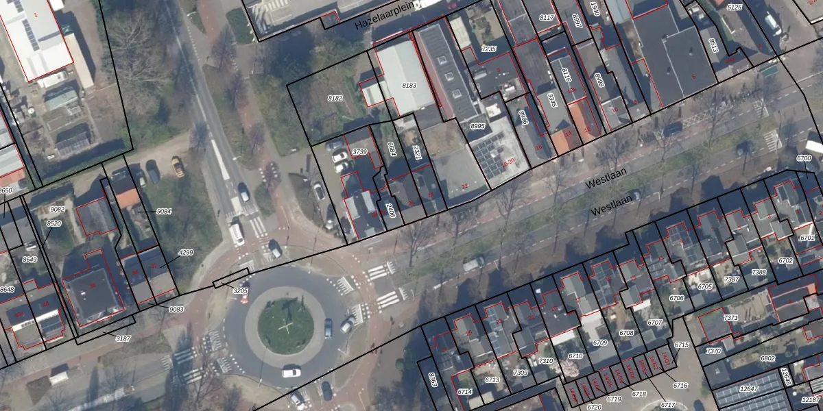 Gebruik de zoekbalk of klik op een perceel voor informatie over de adressen binnen dit perceel.
