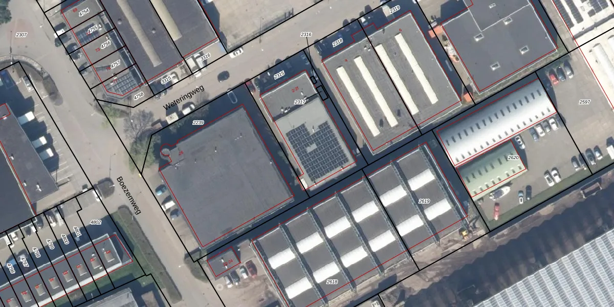 Weteringweg 2-f is gelegen op kadastraal perceel PAK00B2315. Deze kadastrale aanduiding is uniek en wordt gebruikt door het Kadaster om eigendomsrechten en andere zakelijke rechten vast te leggen. Het perceel maakt onderdeel uit van de kadastrale gemeente Pijnacker.