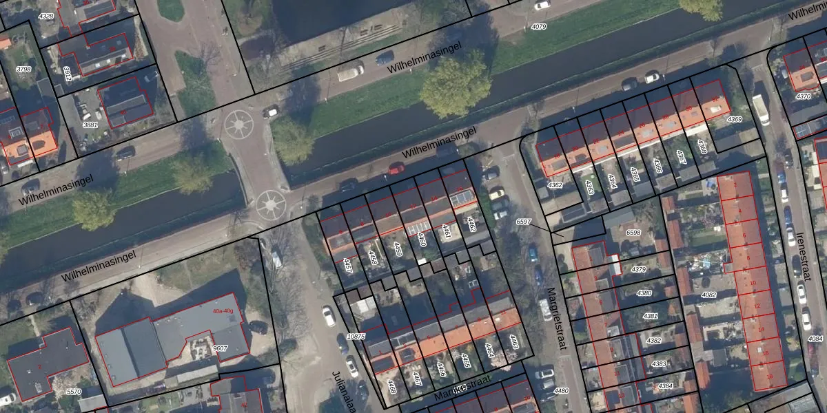 Gebruik de zoekbalk of klik op een perceel voor informatie over de adressen binnen dit perceel.