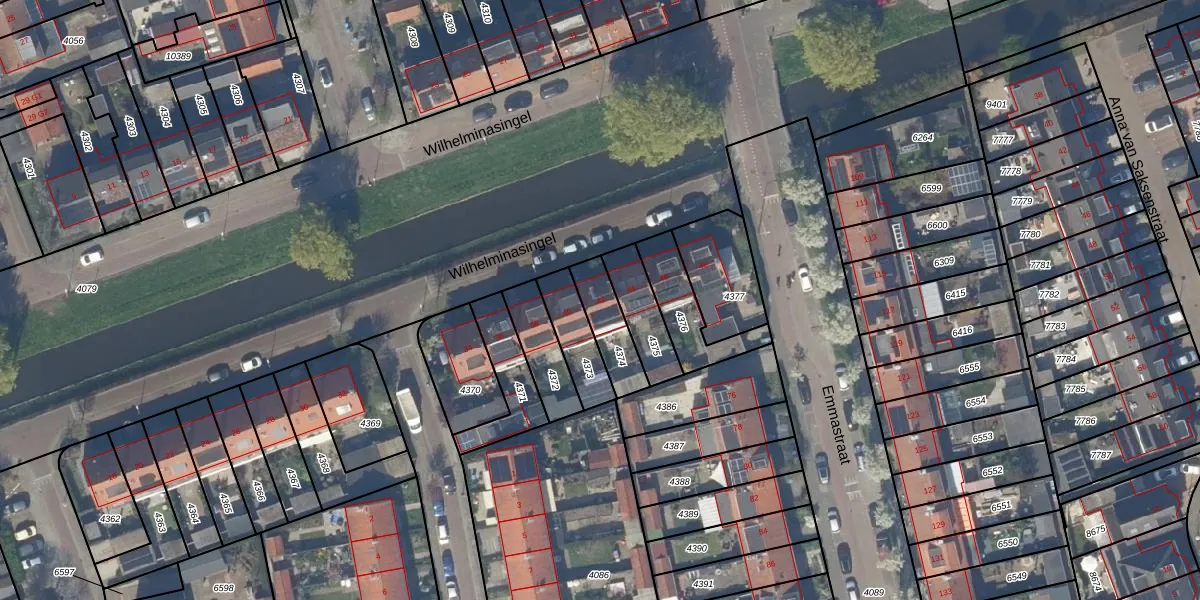 Gebruik de zoekbalk of klik op een perceel voor informatie over de adressen binnen dit perceel.