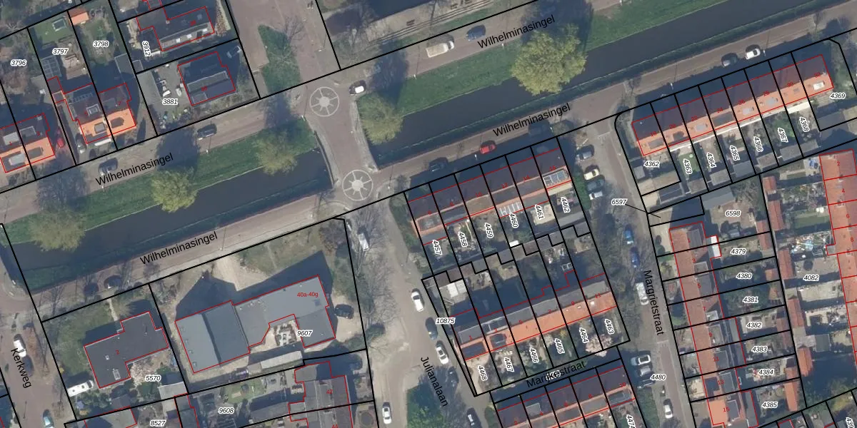 Gebruik de zoekbalk of klik op een perceel voor informatie over de adressen binnen dit perceel.
