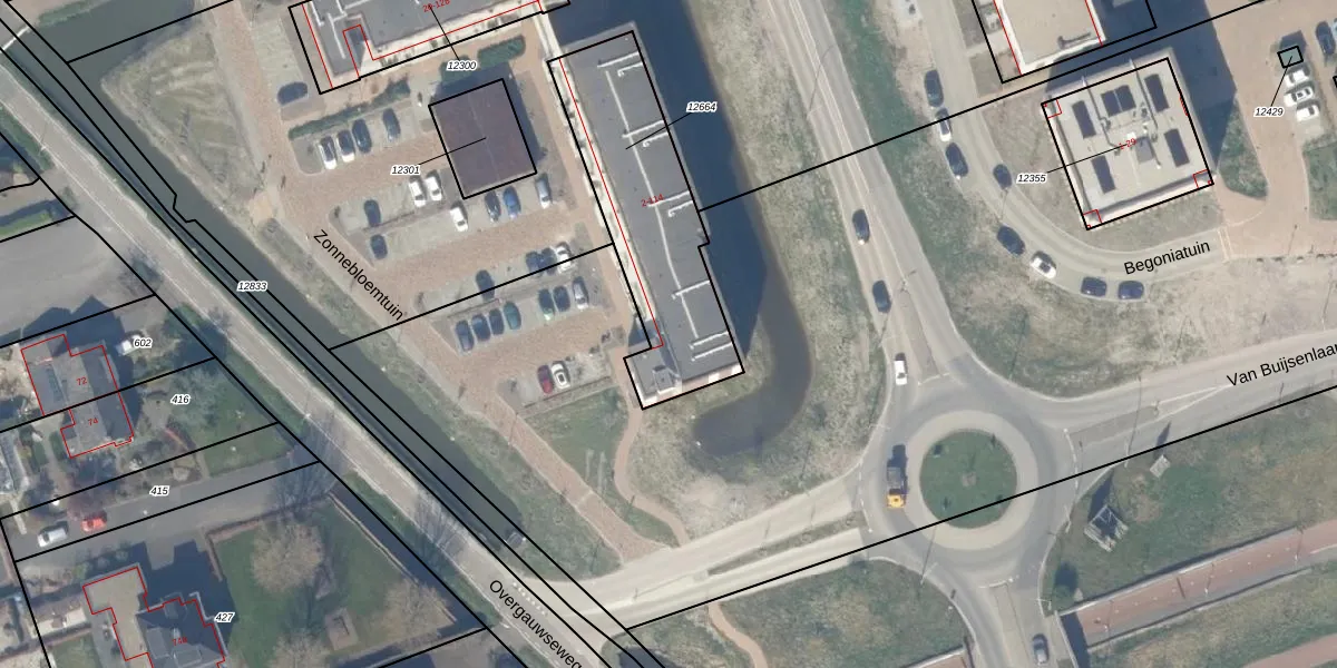 Het perceel waarop Zonnebloemtuin 100 staat heeft een oppervlakte van 725 m². Dit is een groot perceel. De perceeloppervlakte wordt geregistreerd door het Kadaster. Gedetailleerde informatie over de maten van dit perceel kunt u vinden in het rapport Kadastrale kaart met maatvoering van Zonnebloemtuin 100.