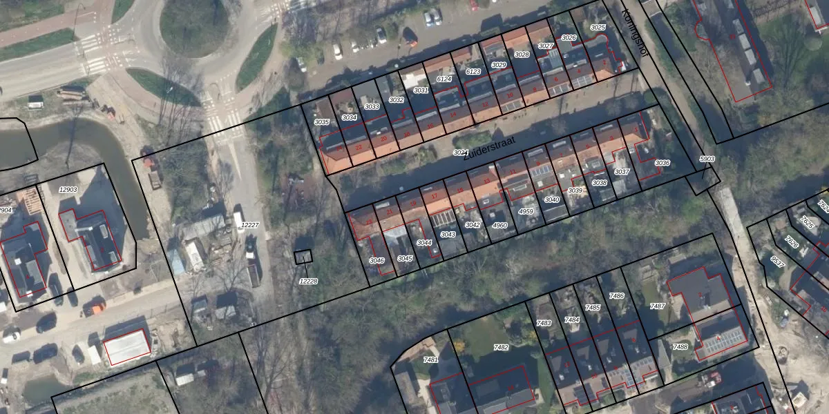 Gebruik de zoekbalk of klik op een perceel voor informatie over de adressen binnen dit perceel.