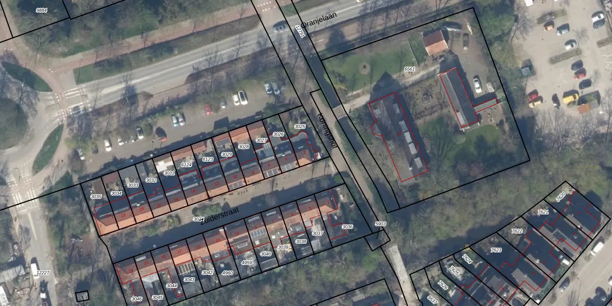 Gebruik de zoekbalk of klik op een perceel voor informatie over de adressen binnen dit perceel.