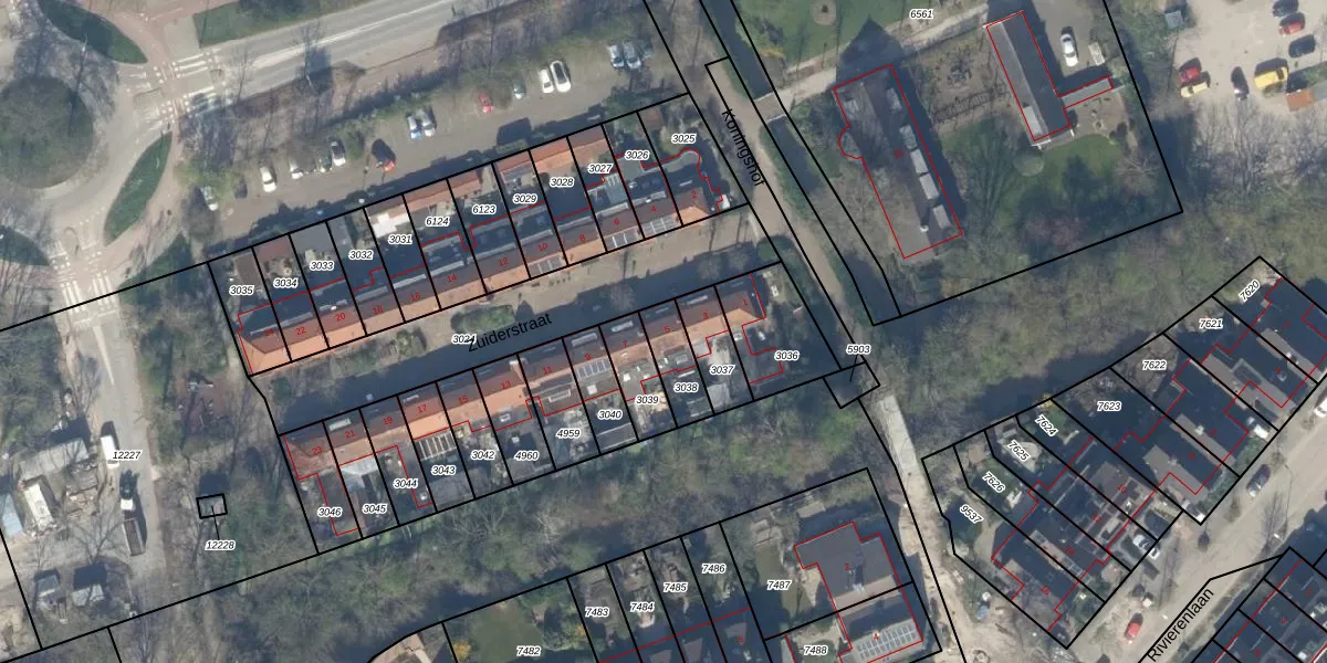 Gebruik de zoekbalk of klik op een perceel voor informatie over de adressen binnen dit perceel.