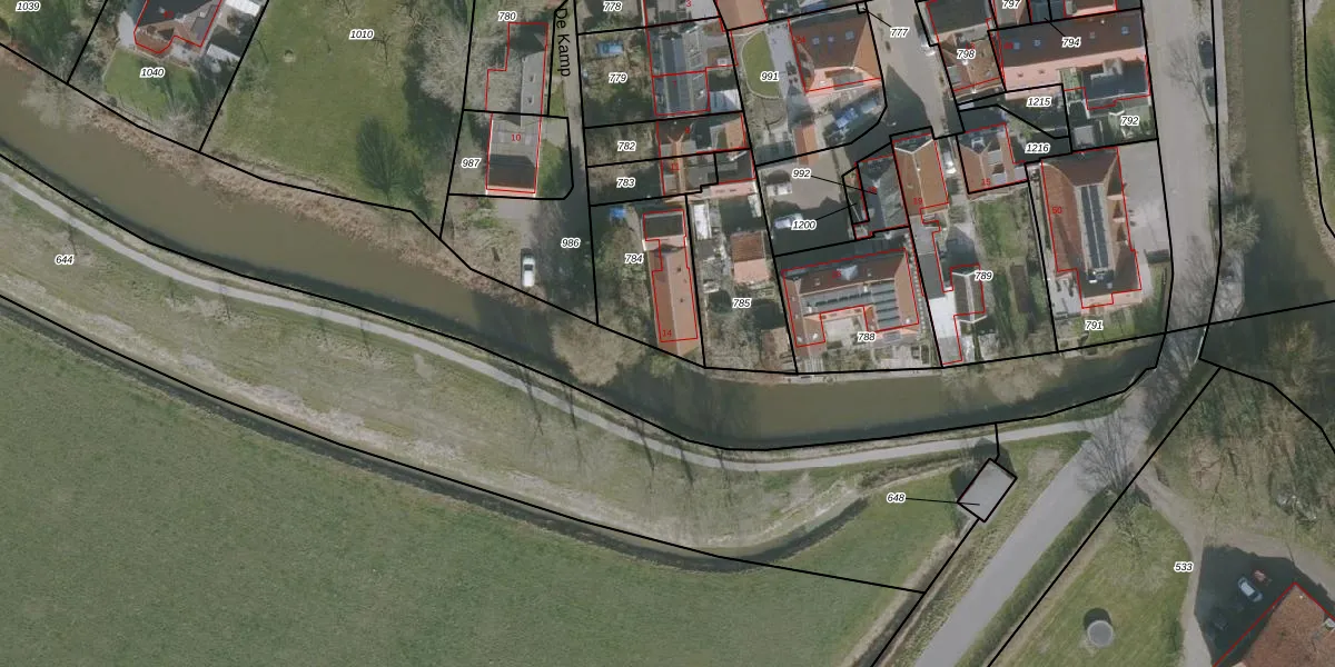De Kamp 14 is gelegen op kadastraal perceel WMS03E784. Deze kadastrale aanduiding is uniek en wordt gebruikt door het Kadaster om eigendomsrechten en andere zakelijke rechten vast te leggen. Het perceel maakt onderdeel uit van de kadastrale gemeente Witmarsum.