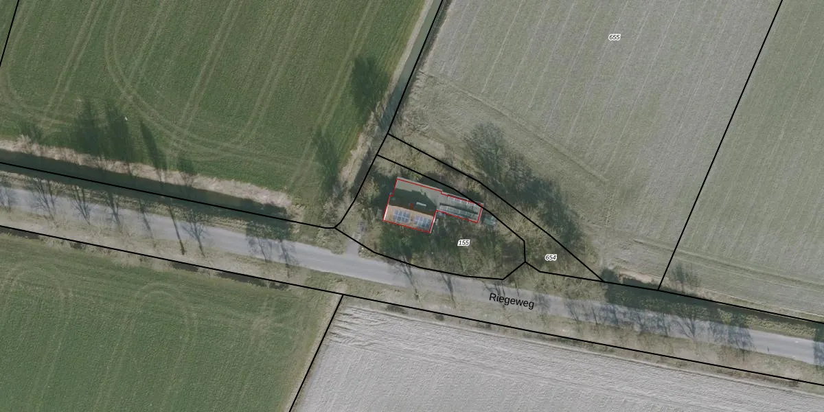 Riegeweg 2 is gelegen op kadastraal perceel WMS03E155. Deze kadastrale aanduiding is uniek en wordt gebruikt door het Kadaster om eigendomsrechten en andere zakelijke rechten vast te leggen. Het perceel maakt onderdeel uit van de kadastrale gemeente Witmarsum.