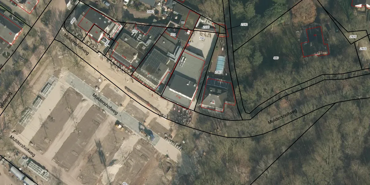 Muldershofweg 7-a is gelegen op kadastraal perceel MOO00C700. Deze kadastrale aanduiding is uniek en wordt gebruikt door het Kadaster om eigendomsrechten en andere zakelijke rechten vast te leggen. Het perceel maakt onderdeel uit van de kadastrale gemeente Mook en Middelaar.