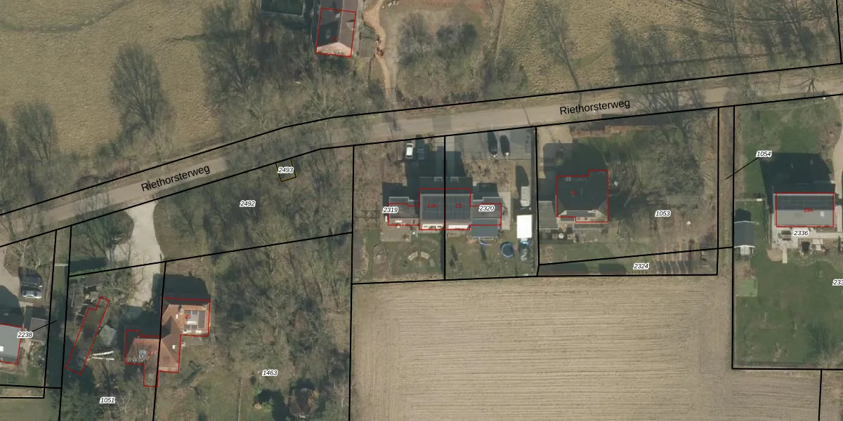 Het perceel waarop Riethorsterweg 23-a staat heeft een oppervlakte van 735 m². Dit is een groot perceel. De perceeloppervlakte wordt geregistreerd door het Kadaster. Gedetailleerde informatie over de maten van dit perceel kunt u vinden in het rapport Kadastrale kaart met maatvoering van Riethorsterweg 23-a.