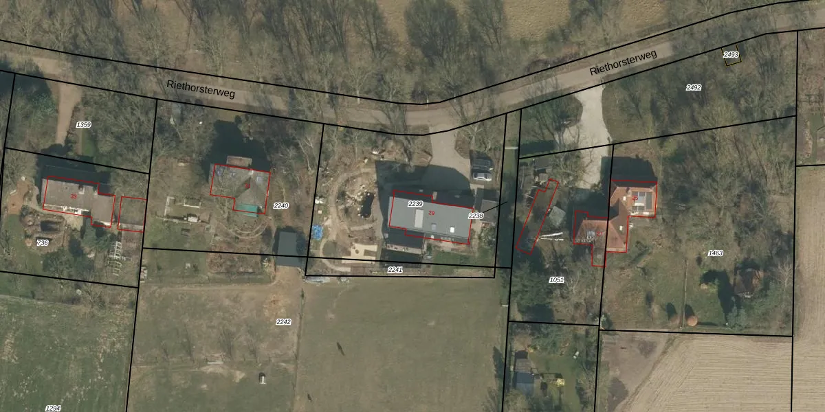 Het perceel waarop Riethorsterweg 29 staat heeft een oppervlakte van 1460 m². Dit is een zeer groot perceel. De perceeloppervlakte wordt geregistreerd door het Kadaster. Gedetailleerde informatie over de maten van dit perceel kunt u vinden in het rapport Kadastrale kaart met maatvoering van Riethorsterweg 29.
