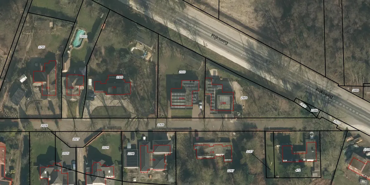 Het perceel waarop Rijksweg 178-a staat heeft een oppervlakte van 1005 m². Dit is een zeer groot perceel. De perceeloppervlakte wordt geregistreerd door het Kadaster. Gedetailleerde informatie over de maten van dit perceel kunt u vinden in het rapport Kadastrale kaart met maatvoering van Rijksweg 178-a.