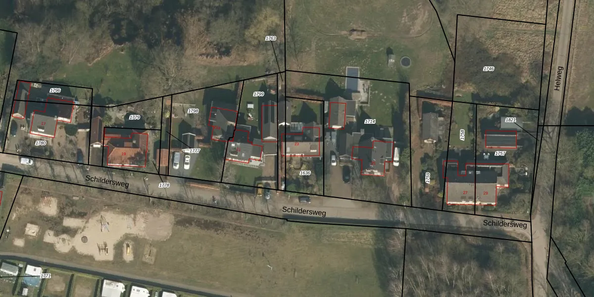 Schildersweg 23 is gelegen op kadastraal perceel MOO00B1636. Deze kadastrale aanduiding is uniek en wordt gebruikt door het Kadaster om eigendomsrechten en andere zakelijke rechten vast te leggen. Het perceel maakt onderdeel uit van de kadastrale gemeente Mook en Middelaar.
