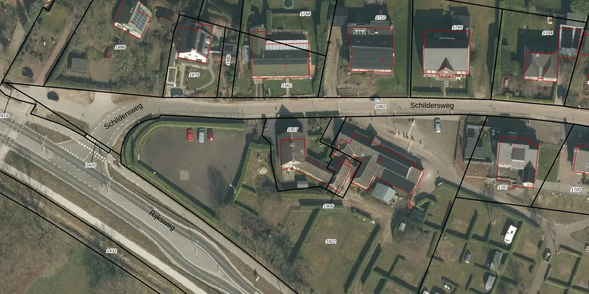 Schildersweg 4 is gelegen op kadastraal perceel MOO00B1907. Deze kadastrale aanduiding is uniek en wordt gebruikt door het Kadaster om eigendomsrechten en andere zakelijke rechten vast te leggen. Het perceel maakt onderdeel uit van de kadastrale gemeente Mook en Middelaar.