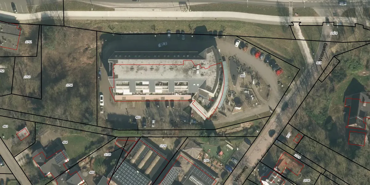 Het perceel waarop Witteweg 4-r staat heeft een oppervlakte van 4880 m². Dit is een zeer groot perceel. De perceeloppervlakte wordt geregistreerd door het Kadaster. Gedetailleerde informatie over de maten van dit perceel kunt u vinden in het rapport Kadastrale kaart met maatvoering van Witteweg 4-r.