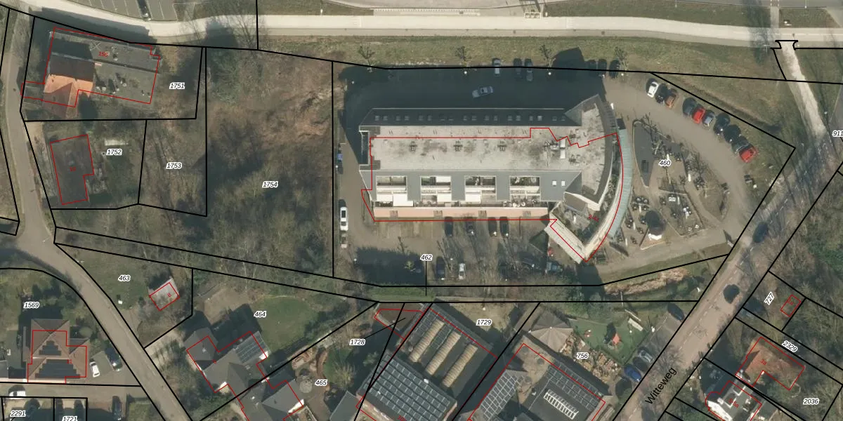 Witteweg 4-h is gelegen op kadastraal perceel MOO00C460. Deze kadastrale aanduiding is uniek en wordt gebruikt door het Kadaster om eigendomsrechten en andere zakelijke rechten vast te leggen. Het perceel maakt onderdeel uit van de kadastrale gemeente Mook en Middelaar.