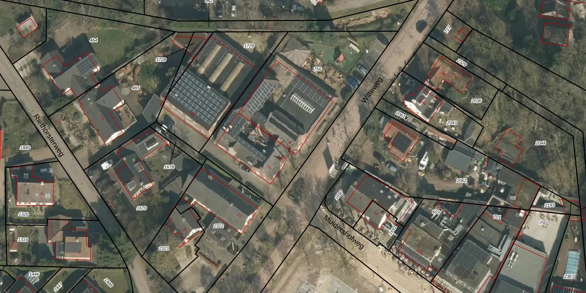 Het perceel waarop Witteweg 8 staat heeft een oppervlakte van 1912 m². Dit is een zeer groot perceel. De perceeloppervlakte wordt geregistreerd door het Kadaster. Gedetailleerde informatie over de maten van dit perceel kunt u vinden in het rapport Kadastrale kaart met maatvoering van Witteweg 8.