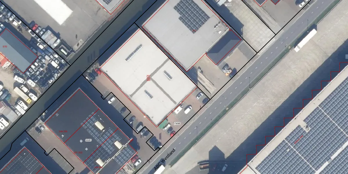 Het perceel waarop ABC Westland 265 staat heeft een oppervlakte van 2538 m². Dit is een zeer groot perceel. De perceeloppervlakte wordt geregistreerd door het Kadaster. Gedetailleerde informatie over de maten van dit perceel kunt u vinden in het rapport Kadastrale kaart met maatvoering van ABC Westland 265.