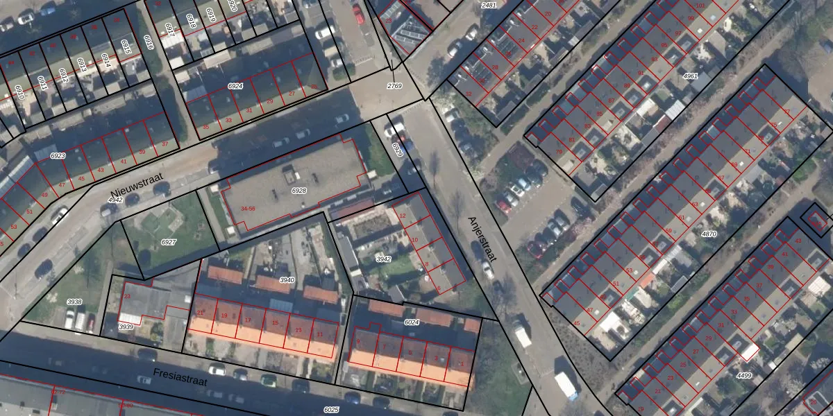 Het perceel waarop Anjerstraat 12 staat heeft een oppervlakte van 749 m². Dit is een groot perceel. De perceeloppervlakte wordt geregistreerd door het Kadaster. Gedetailleerde informatie over de maten van dit perceel kunt u vinden in het rapport Kadastrale kaart met maatvoering van Anjerstraat 12.