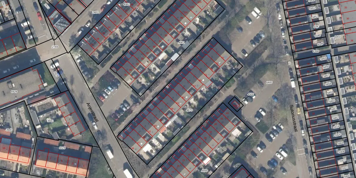 Het perceel waarop Anjerstraat 63 staat heeft een oppervlakte van 1818 m². Dit is een zeer groot perceel. De perceeloppervlakte wordt geregistreerd door het Kadaster. Gedetailleerde informatie over de maten van dit perceel kunt u vinden in het rapport Kadastrale kaart met maatvoering van Anjerstraat 63.