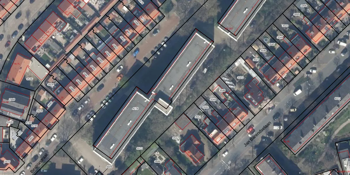 Het perceel waarop Beatrixstraat 87 staat heeft een oppervlakte van 1187 m². Dit is een zeer groot perceel. De perceeloppervlakte wordt geregistreerd door het Kadaster. Gedetailleerde informatie over de maten van dit perceel kunt u vinden in het rapport Kadastrale kaart met maatvoering van Beatrixstraat 87.