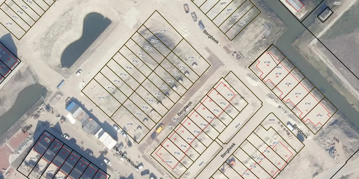 Gebruik de zoekbalk of klik op een perceel voor informatie over de adressen binnen dit perceel.