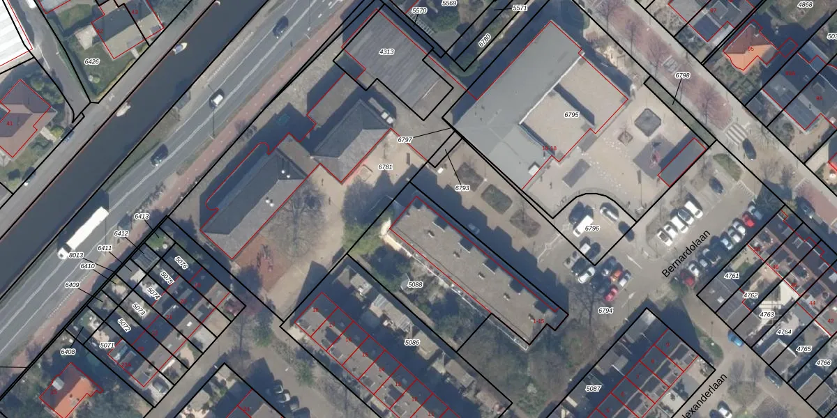 Het perceel waarop Bernardolaan 4 staat heeft een oppervlakte van 1021 m². Dit is een zeer groot perceel. De perceeloppervlakte wordt geregistreerd door het Kadaster. Gedetailleerde informatie over de maten van dit perceel kunt u vinden in het rapport Kadastrale kaart met maatvoering van Bernardolaan 4.
